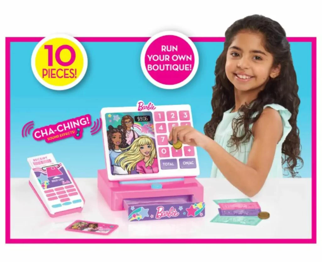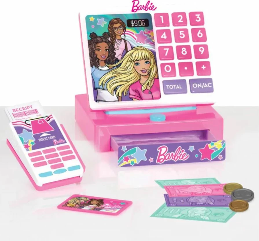 Cha-ching! Barbie fans can ring up their customers in style with the Barbie Trendy Cash Register! This fabulous register has so many fun features and accessories for little shop owners to play with.