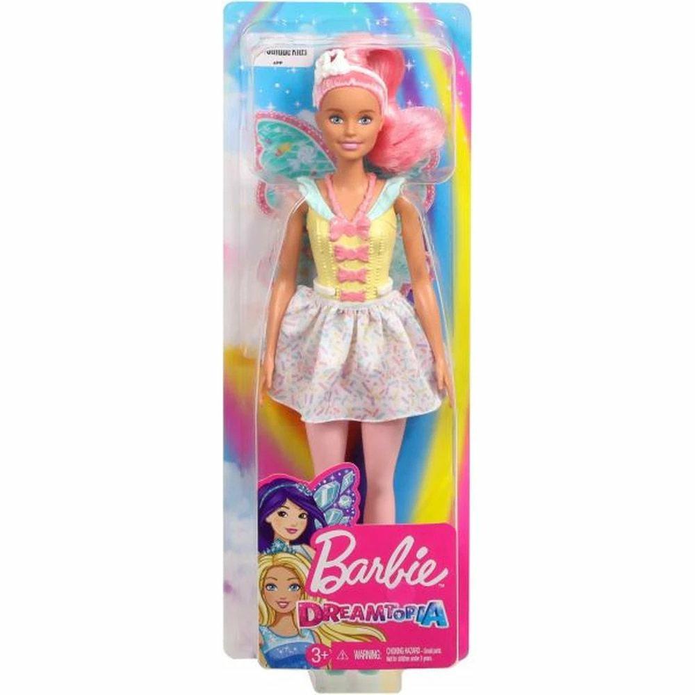 Take marvelous flights with sweet and playful fairy dolls from Barbie Dreamtopia. The 11.5-inch doll has beautiful wings with a unique shape and rainbow print influenced by her home of Rainbow Cove;. A removable skirt, shoes and headpiece also incorporate bright colors, fantastic prints and fun touches. Doll cannot stand alone. Colors and decorations may vary 3+