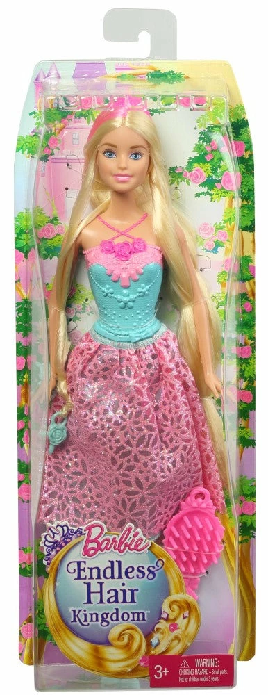 Barbie© delivers a new twist on hair! With gorgeous long locks — 8 inches of pink-streaked blonde hair — this Barbie© princess doll is ready for new fabulous hairstyles created by you! She comes with a brush and tiara headband for hairstyling fun. Plus, for even more creative expression, the two beads in her hair are designed to work with the Barbie© styling tool sold with the Barbie© Snap ?n Style Princess Doll (sold separately). The beads snap into the hair tool, and young hairstylists simply press the button on the tool to twist the hair in an instant. It’s so much fun and creative hairstyling expression! Create a fabulous look — play out a storytelling moment — then take the hairstyle down, brush out and start again. There are endless ways to style Barbie© princess doll’s long hair to match the endless stories to be told. Ready for anything, Barbie© doll shines in a princess-worthy bodice with decorative neck detail, a shimmery print skirt and fabulous pair of shoes. For even more hair-play fun, collect all of the dolls and pets from the Endless Hair Kingdom&trade,
