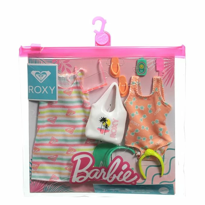 - ?This Barbie® doll fashion pack incorporates recognizable icons from popular lifestyle brand Roxy into graphics and prints (doll sold separately).