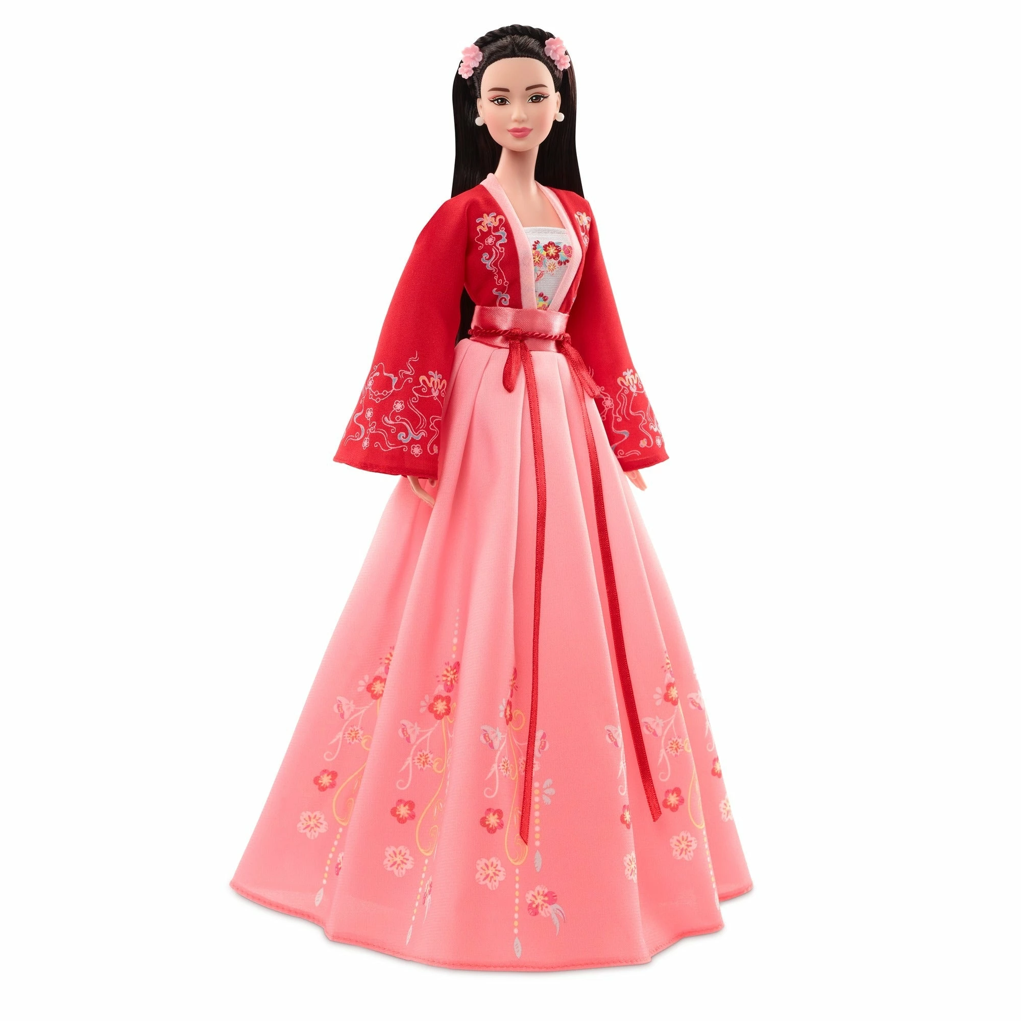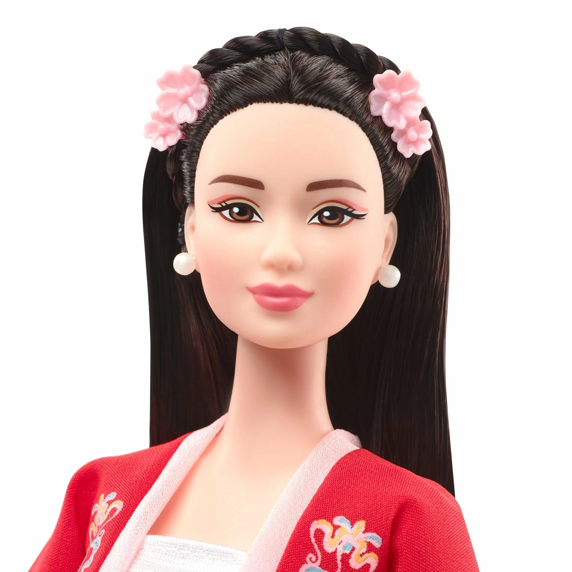 For fifteen days, the holiday is filled with family gatherings and festive performances, all marked with gorgeous red decorations symbolizing abundance and good fortune. Dressed in traditional hanfu style, Barbie® Lunar New Year doll embodies the spirit of the holiday in a sheer red blouse and a sweeping pink skirt delicately printed with meihua, or plum blossoms, symbolizing renewal and strength.