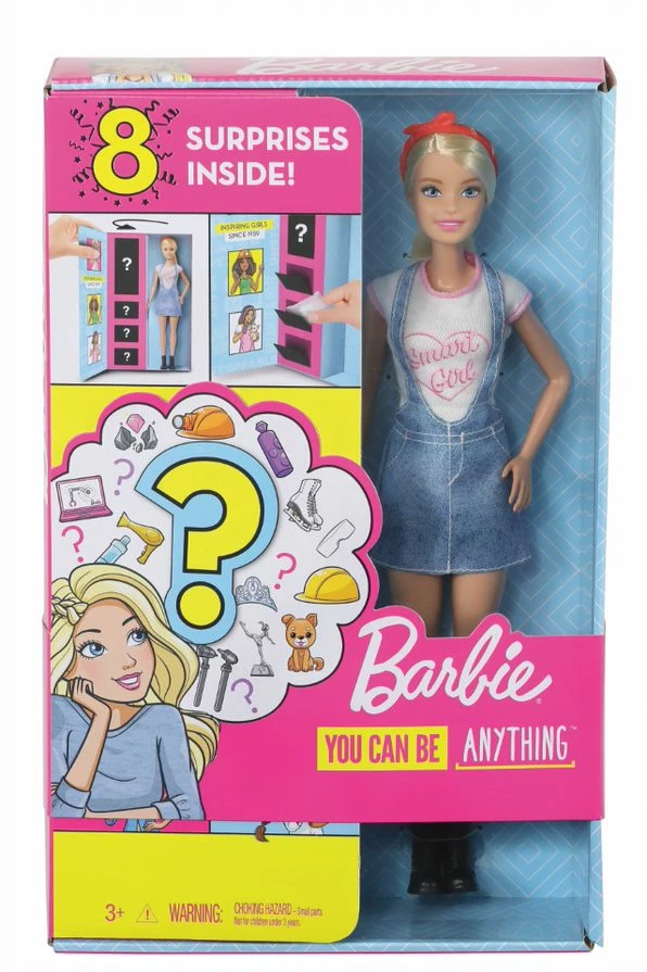 The Barbie® surprise careers dolls delight kids with an unboxing experience that has eight pieces to discover! Each doll comes with two career looks featuring professionally themed clothing and accessories — but which careers? Kids unbox to discover which surprises are inside. Four different compartments hold multiple surprises. They might find pieces to dress Barbie® doll as a rocket engineer and figure skater, a geologist and pet groomer or a pediatrician and dancer. There are three different dolls to choose from with a range of skin tones, hairstyles and looks to add even more variety for role-play fun — each wears a trendy look with an inspirational message and versatile pieces. Choose your doll — she’s visible in the box, and then unbox your surprise careers. What do you want to be when you grow up? Explore it all with the Barbie® surprise career dolls because when a girl plays with Barbie®, she imagines everything she can become. Includes Barbie® doll wearing fashions and accessories, plus eight surprise career-themed clothing and accessories. Each sold separately, subject to availability. Dolls cannot stand alone. Colors and decorations may vary.