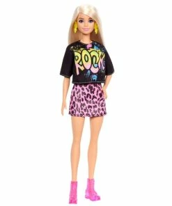 BARBIE FASHIONISTA DOLL #155 ROCK OUT T-SHIRT WITH PINK LEOPARD PRINT SKIRT