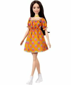 BARBIE FASHIONISTA DOLL #160 ORANGE POLKA DOT DRESS WITH YELLOW NECKLACE