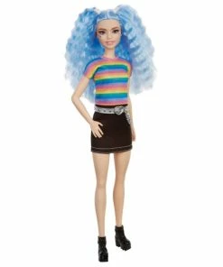 BARBIE FASHIONISTA DOLL BLUE HAIR STRIPED SHIRT