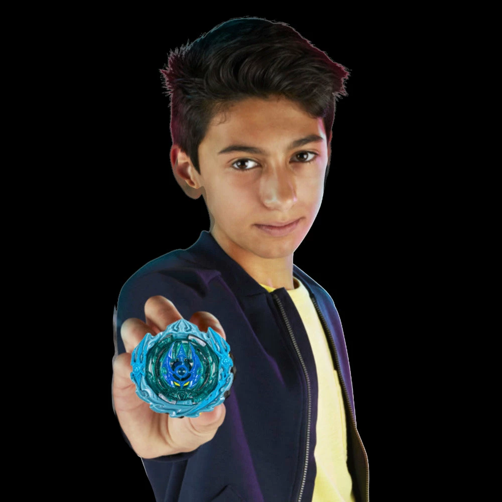 Train to become champion of the arena with right-spin Beyblade Burst QuadStrike Hydra Poseidon P8 G05 QD01 TD21-Q B06 top and launcher. Customize the top to Core and Apex mode for defence type or to Core+ and Apex+ mode for balance type. Unleash the energy of QuadStrike tech in the QuadStrike Beystadium (Beystadium sold separately, subject to availability). Scan code on tops to unleash your top in a virtual battle in the Beyblade Burst app!