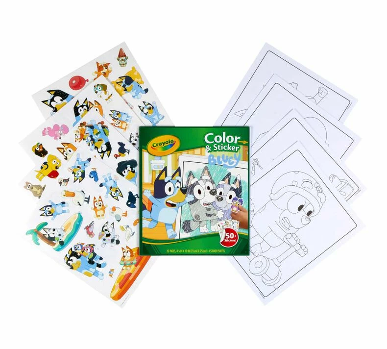 This Crayola Color & Sticker Book offers 32 Coloring Pages and 4 Sticker Sheets featuring Bluey and her friends.
