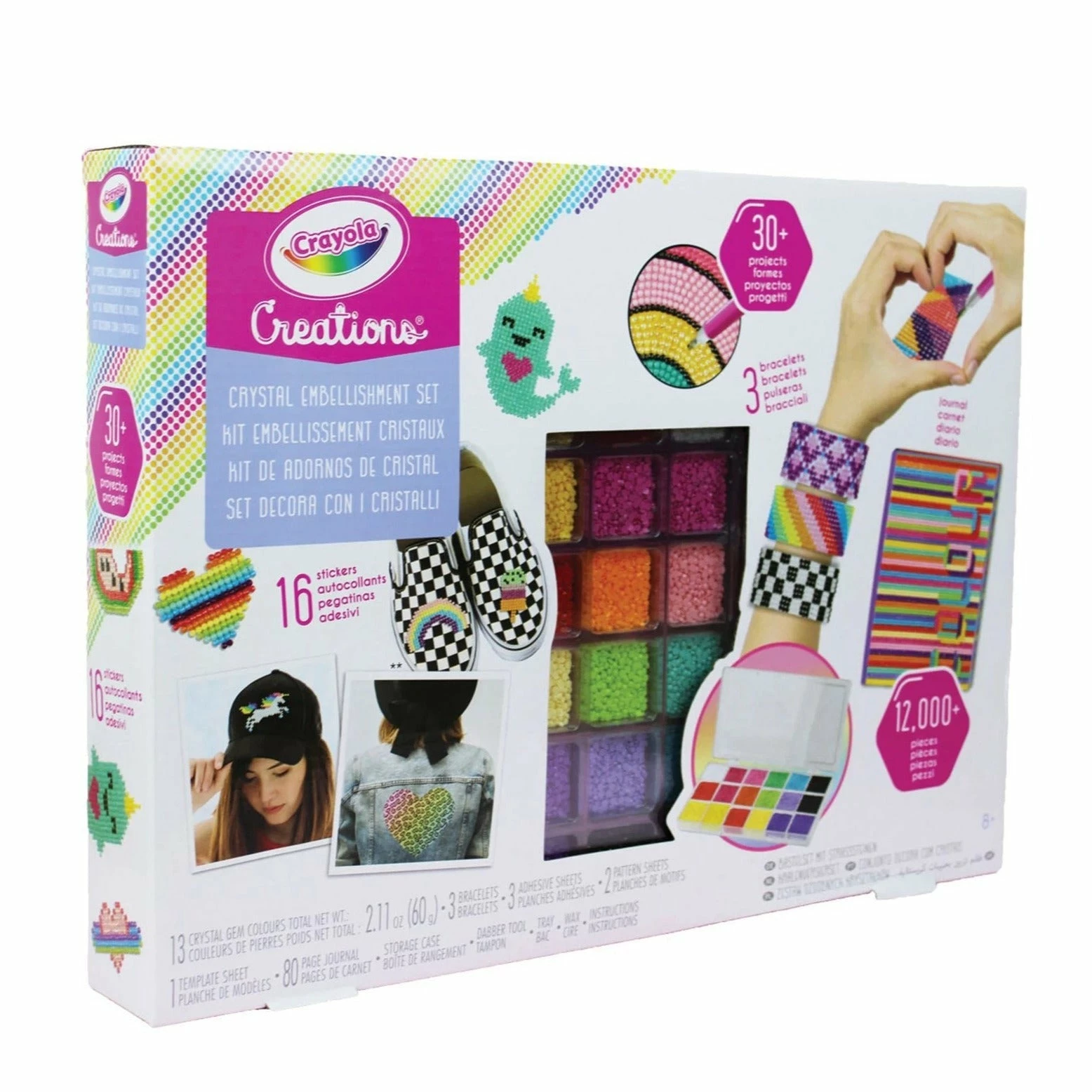 Create and embellish accessories, clothes and stationery with the Crayola Creations Crystal Embellishment Set! Use the included tools to start your design journey. This makes the perfect activity for kids who love to create or a group activity!