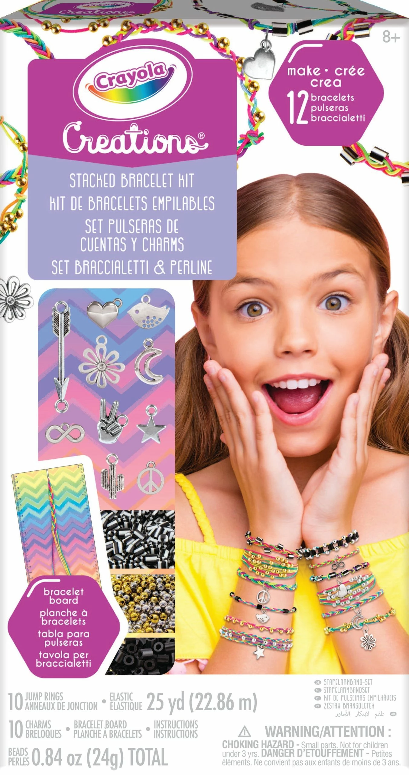Get the kids into some creative fun with the Crayola Creations Stacked Bracelet Kit. With 10 jump rings, 10 charms, a bracelet board, instructions and 22.86m of elastic they can make up to 12 bracelets.