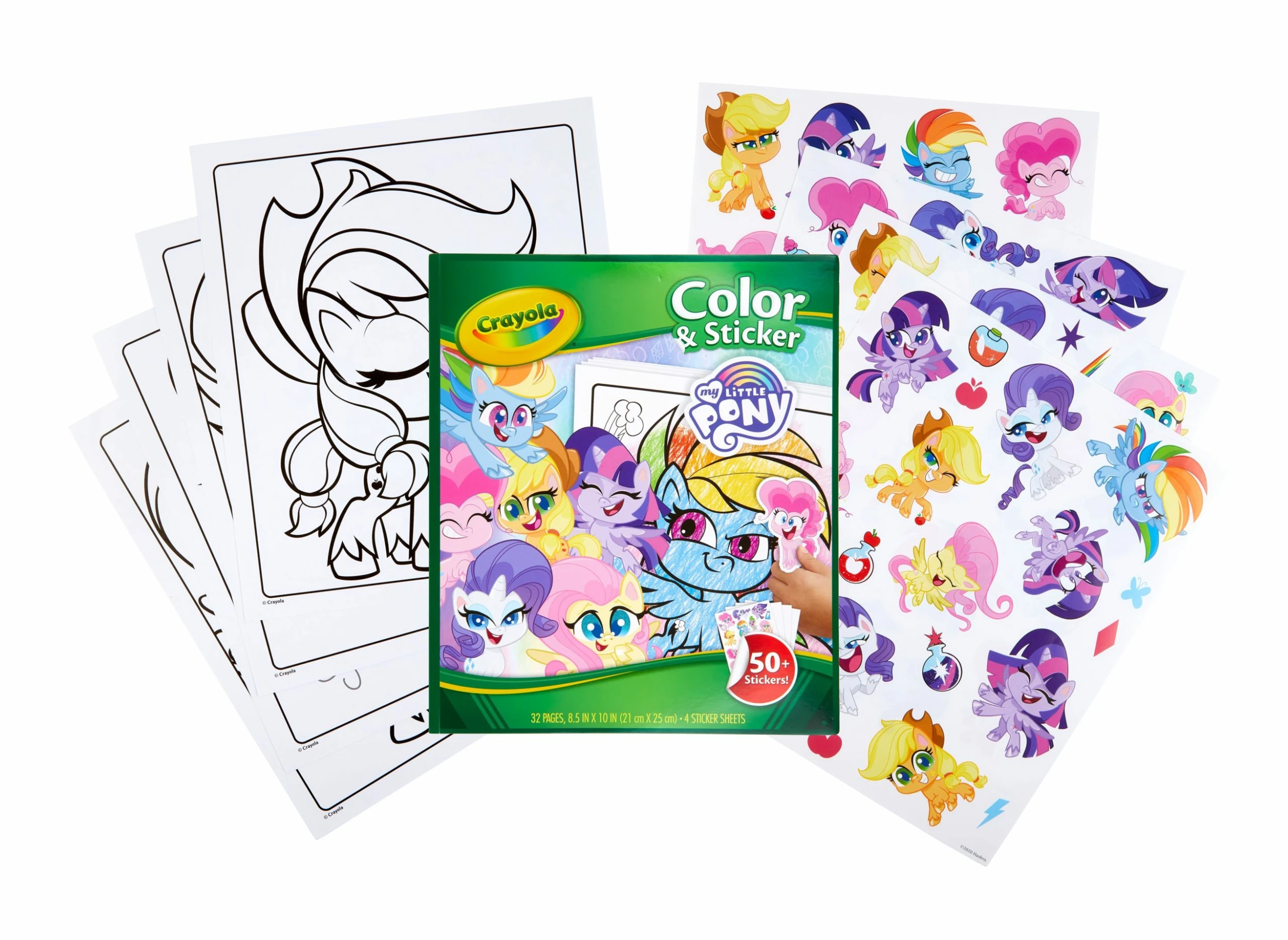 Crayola Color and Sticker sets let kids create colorful adventures at home or on the go! This My Little Pony set offers plenty of fun artwork with characters from the classic kids’ cartoon. The set features 32 Coloring Pages and 4 Sticker Sheets with characters from My Little Pony.