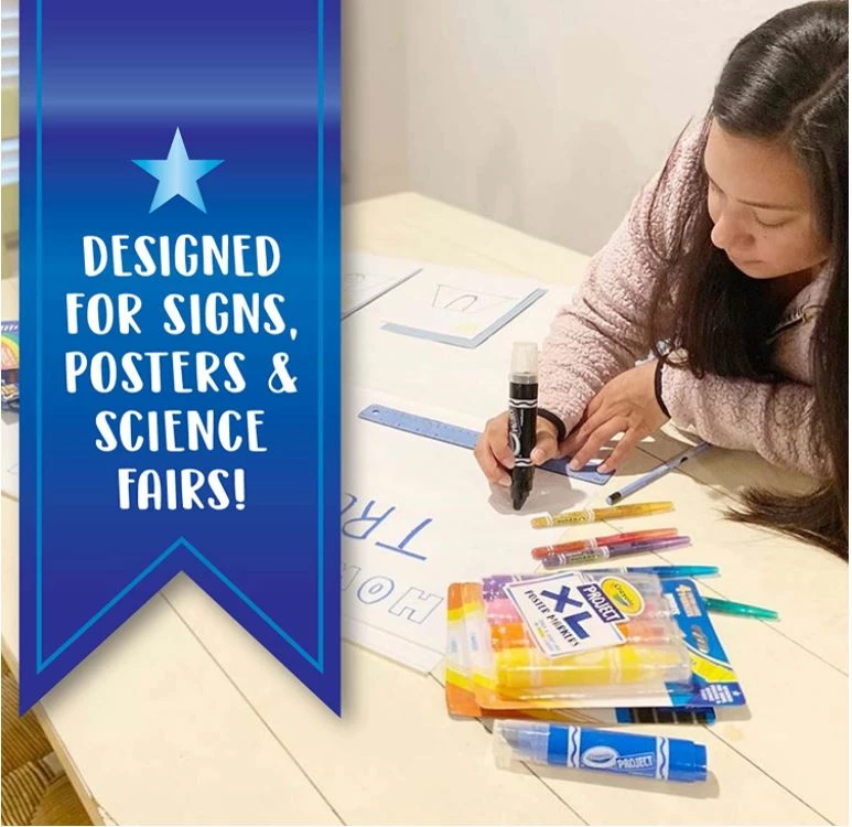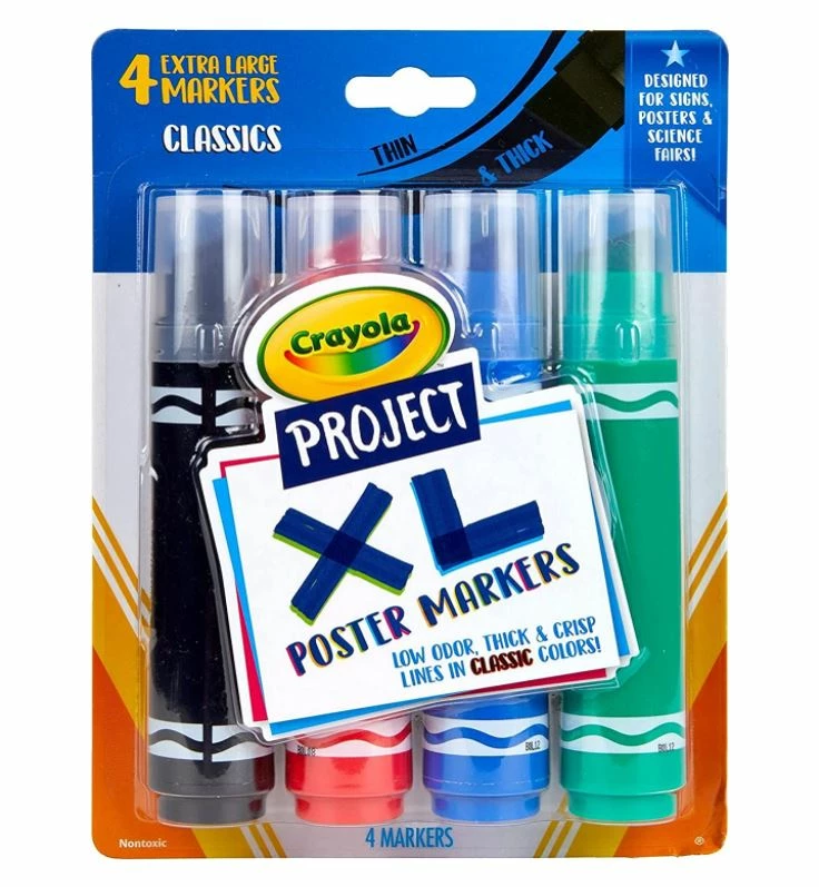 Designed for a variety of projects & assignments, Crayola Project XL Poster Markers draw both thick & thin lines for easy coverage of large surfaces.