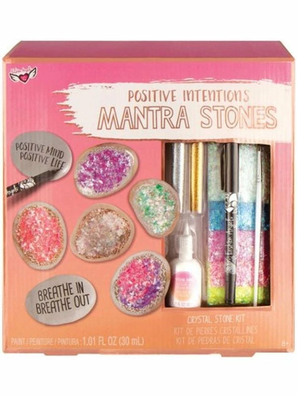 Design your own messages in paint, glitter, marker and confetti with your own Positive Mentions Mantra Stones. Create motivational and inspirational messages for yourself, friends and family.
