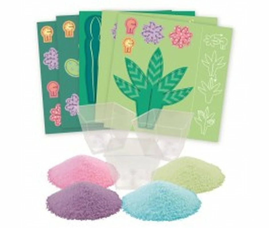 No need to step outdoors while nurturing this The Simple Things Zen Garden Sand Art and Paper Cactus Kit from fashion angels. Relax and create a colorful and serene desert landscape in 3 transparent vases by layering 4 colors of sand. Then plant each card stock cactus in their individual pot.
